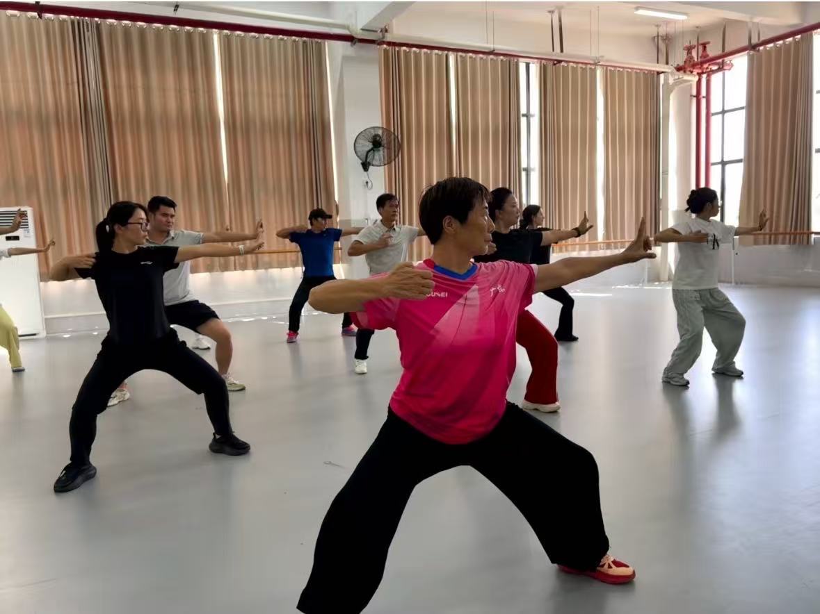 在研讨环节,老师们围绕教学中的实际问题展开热烈交流。针对“如何帮助员工快速纠正动作偏差”“如何结合员工体质调整练习强度”等痛点,大家分享各自的教学经验——有的提出用“口诀记忆法”简化动作要领,有的建议通过慢动作对比视频直观展示错误与标准动作的区别,更有老师结合运动生理学知识,讲解每个招式对身体脏腑的调理作用,让教学不仅“教动作”,更能“讲原理”。